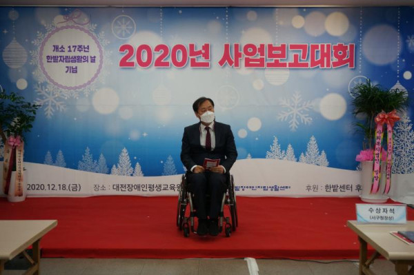 2020년 사업보고대회 오정미 뎃글수 0 조회수 2064 작성일 2020.12.30 유튜브 다시보기 - 2020년 한밭장애인자립생활센터 개소 17주년 한밭자립생활의 날 기념 사업보고대회 - YouTube 제17주년 한밭자립생활의 날 기념 "2020년 사업보고대회"를 개최하였습니다. 코로나로 인해 모두가 함께 할 수 없어 아쉬움이 있었습니다. 그러나 유튜브 생방송을 통해 그동안 함께 하지 못했던 분들이 참여해 주셨고 서로를 축하하고 응원하는 시간이었습니다. 한해동안 자립을 위해 애쓰신 장애인, 근로자, 후원회, 유관기관께 다시한번 감사드리며 내년에는 꼭 만나서 파티를 즐겨보도록 하겠습니다.