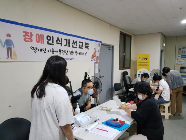 장애인식개선 개별교육 박상하 뎃글수 0 조회수 1990 작성일 2020.08.18 장애인식개선 개별교육을 8월 3일 ~ 7일까지 5일간 진행 하였습니다. 미처 생각지 못했던 부분을 그림으로 찾아보며 모르던 부분을 친절하게 성명까지 듣게 되어 모든분들이 쉽게 이해하며 만족하였습니다.
