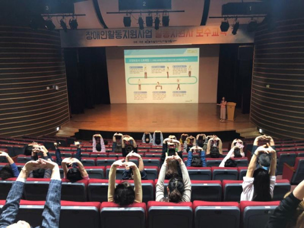 2019년 3차 활동지원사 보수교육 김선홍 뎃글수 0 조회수 2045 작성일 2019.10.10 장애인활동지원사업 3차 활동지원사 보수교육이 10/8일 1회 10시~12시 2회 14시~16시 3회 17시~19시에 대전서구문화원에서 장애인식개선 교육 및 산업안전보건교육 및 심폐소생술에 대한 교육을 실시하였습니다. 바쁘신 와중에도 많은 활동지원사 선생님들이 참석해주셨습니다. 참석해주신 모든 활동지원사분들에게 감사를 표하며, 앞으로도 진행될 보수교육에 적극적인 참여 부탁드립니다.