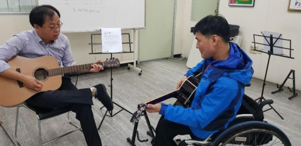 통통기타교실 오정미 뎃글수 0 조회수 1999 작성일 2018.12.21 재밌고 신나는 통통기타교실이 10.25~12.18까지 진행되었습니다. 손 마디마디가 부르트고 마음만큼 실력이 늘지 않아 그만두고 싶을때도 있었습니다. 그러나 매일 매일 연습하면서 우리는 기타를 칠 수 있게 되었고 드디어 8회 교육만에 발표회를 가질 수 있었습니다. 통통기타교실 회원님의 노력에 박수를 보내며, 대단하십니다.