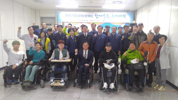 함께 걸음 수레바퀴 (with 대전도시철도공사) 김명석 뎃글수 0 조회수 2342 작성일 2016.11.02 지난 10월 13일 대전광역시도시철도공사와 함께 “수레바퀴” 사업을 진행했습니다. 저상버스타기, 지하상가 둘러보기 등 여러 미션들을 진행하고 수행 하셨습니다. 이날 참여해주시고 호응해주신 모든 분들께 감사드립니다.^-^