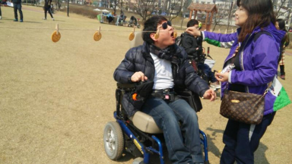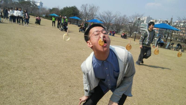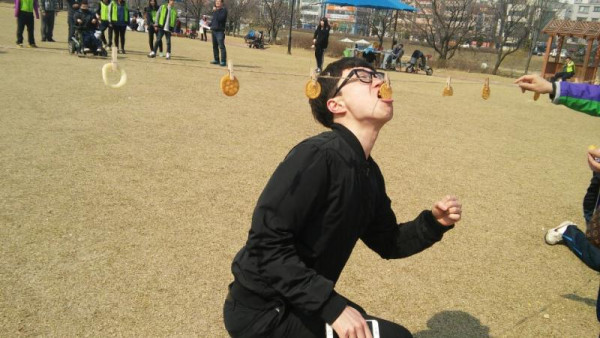 대자연연수- 과자따먹기 오정미 뎃글수 0 조회수 3547 작성일 2016.03.29 < 과자따먹기> 청. 백 단체게임으로 2회 진행했으며 총 10명의 선수로 구성 - 휠체어장애인2명, 지체장애인2명, 비장애인 6명 릴레이형식으로 과자를 먼저 따먹는 팀이 우승 두번다 백군이 우승- 한밭은 백~~ 군입니다용