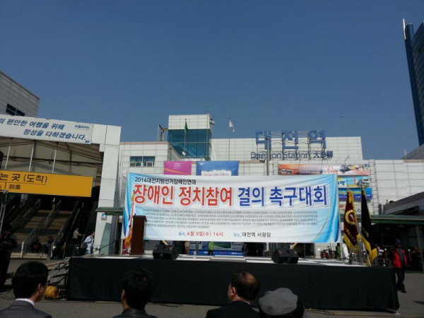 420장애인대회에 다녀왔습니다. 최고관리자 뎃글수 0 조회수 2251 작성일 2014.04.17 장애인당사자단체는 올해로 34회째 맞이하는 2014년 420 장애인의 날과 6.4 지방선거를 맞이하여 「2014년 420 장애인대회추진본부(이하 ‘추진본부’라 한다)」를 구성하고, 4월 16일(수) 오후 2시부터 여의도 이룸센터 앞에서 ‘6.4 지방선거! 세상을 바꾸자 - 장애인유권자여! 조직하고, 투표하라’는 주제로 대규모 집회에 다녀왔습니다.