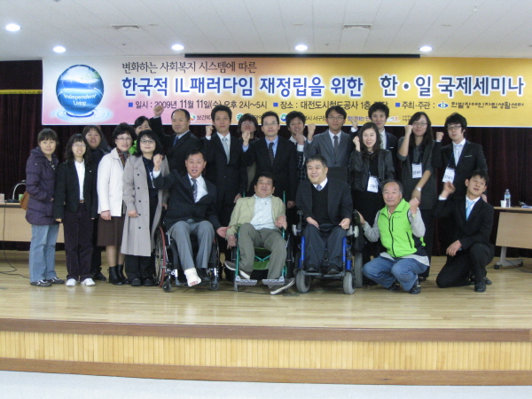 2009 한일 국제 세미나 최고관리자 뎃글수 0 조회수 2046 작성일 2013.08.13 2009년 한일 국제 세미나가 『변화하는 사회복지 시스템에 따른 한국적 IL패러다임 재정립』이란 주제로 지난 11월 11일 대전도시철도공사 1층에서 실시하였습니다. 더 많은 사진을 원하시는 분은 daum 한밭장애인자립생활센터 카페(http://cafe.daum.net/hbil)로 가입하여 "행사사진"게시판을 확인하시면 됩니다.