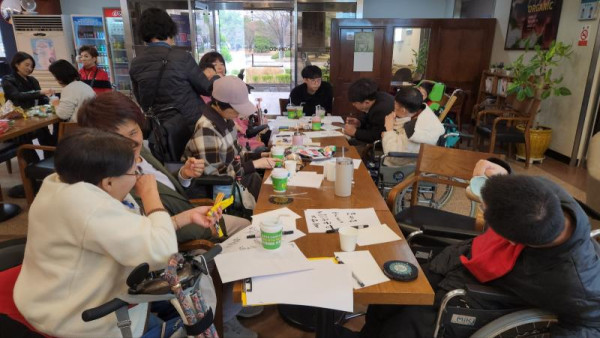자조모임-문화누리 4월 모임 김소희 뎃글수 0 조회수 2074 작성일 2024.04.11 지난 4월 6일 수요일, 문화누리 회원들은 비가 와서 벚꽃놀이 대신 화폐박물관 카페에서 캘리그라피 체험을 했어요~ '삶의 모든 순간이 꽃처럼 문화 자조 홧팅!' 너무 아름다운 글이에요~ 화폐박물관 1층에서 진행중인 꽃꽂이 포토존에서 사진도 찍구요~ 1층 로비에서 사진도 찍으며 추억을 남겼습니다~ 비가 와서 더 운치있네요~ 문화누리 회원들은 5월에 기차 여행을 갈 예정입니다~