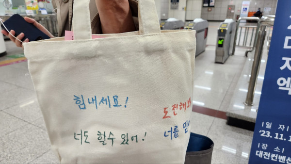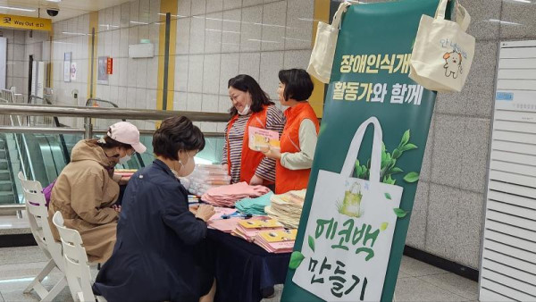 장애인식개선 캠페인-지적장애 최고관리자 뎃글수 0 조회수 2170 작성일 2023.11.06 지난 10월 6일 부터 30일까지 총 6차례 보라매 공원과 정부청사역 대합실에서 장애인식개선 활동가들과 함께 지적장애에 대한 인식개선 캠페인을 진행했습니다. 10월 6일 보라매 공원 에코백 만들기에 참여하는 시민들에게 지적장애인이 듣기 싫어 하는 말과 듣고 싶은 말을 알려드렸습니다. 시민들이 직접 그린 그림과 글처럼 지적장애인들에게 응원 부탁드려요~~