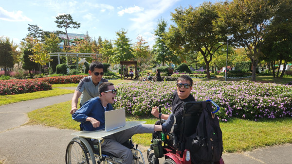 문화누리 10월 자조모임-유림공원 최고관리자 뎃글수 0 조회수 2095 작성일 2023.10.16 지난 10월 11일 문화누리 회원들이 유림공원에 모였습니다. 이 날은 신규 회원도 처음으로 참여하는 날이었습니다. 신규회원의 이단 옆차기 공격 꽃 보다 아름다운 문화누리 회원들의 모습 구경하실까요? 핑크가 잘 어울리는 문화누리 회장님 날씨도 맑고 햇빛이 따뜻한 날이라 회원들의 기분도 좋았습니다. 시원한 음료를 즐기며 힐링하는 시간이었습니다.