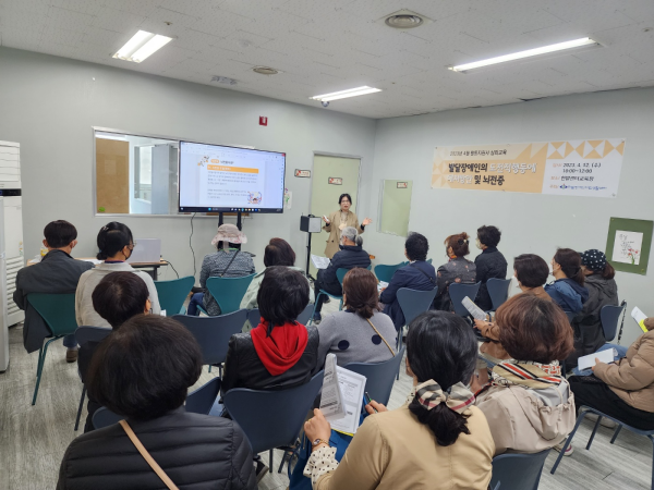 2023년 활동지원사 심화보수교육 활동지원 뎃글수 0 조회수 1757 작성일 2023.04.19 안녕하세요~? 향긋한 봄 내음이 나는 4월입니다~ 이번 심화보수교육은 다송빌딩 202호에서 진행하였습니다~ 필수 의무교육은 아니었지만 많은 선생님들이 신청을 해주셨어요^^ 선생님들 한분한분 편안히 앉으실 수 있도록 자리셋팅을 하구요~ 참석해주신 선생님들께 감사한 마음을 담아 간식도 준비했습니다 ~ 이번 심화보수교육 주제는 "발달장애인의 도전적행동에 대한 대처방안 및 뇌전증에 대한 이해" 입니다~ 박선희 사무국장님의 인사말을 시작으로 심화보수 교육강의 시작~ 한국 디지털 치료 레크리에이션 대전지회 지회장이신 김지영 선생님께서 강의를 해주셨어요~ 이번강의는 특히나 발달장애인에 대해 이해하며, 발달장애인의 도전적행동에 대처하는 방법에 대해 여러 가지 실사례를 들어 실제 서비스할 시 도움이 많이 될 수 있는 강의여서 선생님들의 질문도 많으셨고, 정말 집중력 최고였습니다!!! 쉬는 시간에도 선생님들의 질문이 많이 있으셔서 계속 강의가 이어졌답니다^^~ 궁금한점이 더 있으신 선생님들은 강의가 끝나고 선생님과 더 이야기를 나눌 수 있는 시간도 드렸습니다 ^^ 이번 심화보수교육에서도 선생님들께서 여러가지 의견들을 많이 주셨어요~ 이 의견들은 추후 보수교육 진행시 충~분히 반영해서 완성도 높은 교육을 위해 꾸준하게 진행하도록 노력하겠습니다 ^^ 바쁘신 와중에 교육에 참석해 주셔서 감사하구요 ~ 다음 보수교육 강의때에는 더 많~~은 선생님들과 뵈었으면 좋겠고, 봄꽃 향기와 함께 산뜻한 한달이 되셨으면 합니다. ^^ 감사합니다~