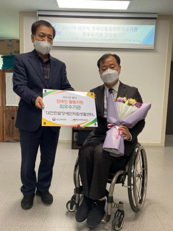 2021년 활동지원기관 3회 연속 서비스품질 최우수기관 선정 조한비 뎃글수 0 조회수 2807 작성일 2021.12.29 2021년 활동지원기관 서비스평가에서 한밭장애인자립생활센터가 활동지원서비스 품질평가를 시작한 2016년부터 2021년까지 3회 연속 서비스품질 최우수기관으로 선정되었습니다. 앞으로도 이용자, 활동지원사에게 질 높은 서비스를 제공하고자 노력하는 한밭이 되겠습니다. 감사합니다.