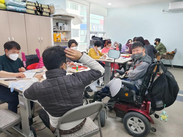 집단프로그램-캐리커쳐 김소희 뎃글수 0 조회수 2836 작성일 2022.04.01 대전시민대학 최상숙 강사님과 함께 하는 캐리커쳐 강좌가 벌써 4회차에 접어들었습니다. 기본 드로잉을 배우는 것 뿐 아니라, 색연필과 파스텔로 채색하는 작업을 통해 힐링하는 시간을 보내고 있습니다. 4월 26일까지 총 8회차 진행될 예정입니다. 많은 관심 부탁드립니다. .