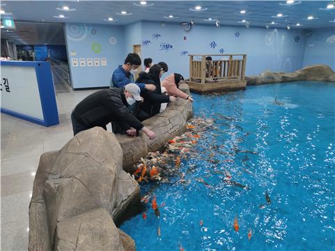 발달장애인 자조모임 최고관리자 뎃글수 0 조회수 2642 작성일 2020.11.23 발달장애인 자조모임에서 아쿠아리움에 다녀왔습니다. 작년 모임때부터 가고 싶다고 이야기 나왔던 곳인데, 이제야 가게 되었습니다. 아쿠아리움 구경도 하고 붕어 먹이주기 체험도 하는데 무섭다고 한반 물러났다가도, 동료들이 하는 모습에 용기내어 함께 먹이도 주고 즐거운 시간을 보냈습니다.