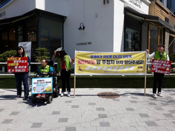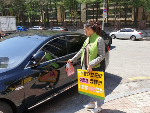 3차 장애인식개선 캠페인 최고관리자 뎃글수 0 조회수 2725 작성일 2019.04.18 4월 17일 한밭센터에서는 점심시간을 이용하여 횡단보도 앞 불법주정차하는 차량 및 일반시민을 대상으로 장애인식개선 캠페인을 진행하였습니다. 2019년 10월까지 진행하는 사업인 만큼 꾸준한 관심 부탁드립니다.