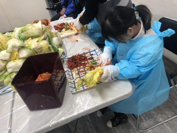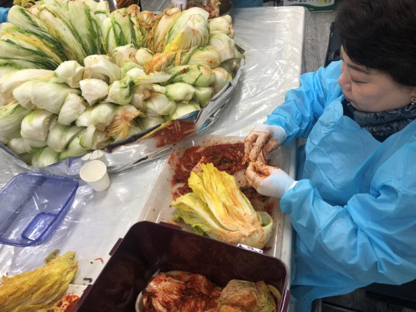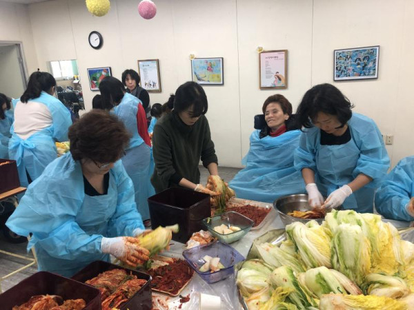 세시음식만들기 김장체험 안정현 뎃글수 0 조회수 2724 작성일 2018.12.06 11월 23일 김장철을 맞이하여, 김장체험을 했습니다~!! 참여하신 분들과 함께 만들어보고, 완성된 김치와 맛있는 수육도 함께 먹었습니다. 참여자 분들 외에도 소외계층에 완성된 김장을 전달하며 나눔을 실천한 소중한 시간이였습니다.