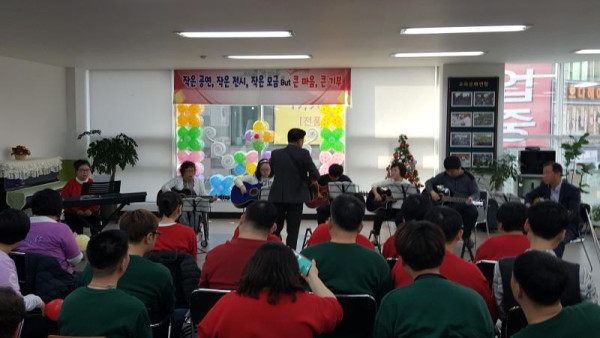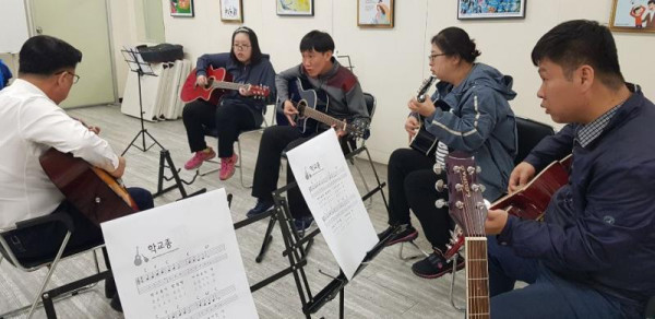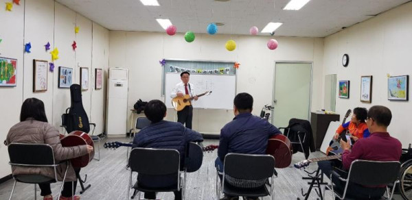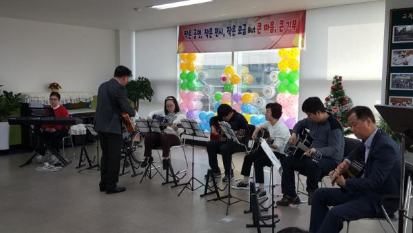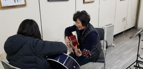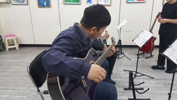 통통기타교실 오정미 뎃글수 0 조회수 2701 작성일 2018.12.21 재밌고 신나는 통통기타교실이 10.25~12.18까지 진행되었습니다. 손 마디마디가 부르트고 마음만큼 실력이 늘지 않아 그만두고 싶을때도 있었습니다. 그러나 매일 매일 연습하면서 우리는 기타를 칠 수 있게 되었고 드디어 8회 교육만에 발표회를 가질 수 있었습니다. 통통기타교실 회원님의 노력에 박수를 보내며, 대단하십니다.
