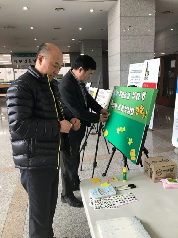2월 19일. 장애인인식개선캠페인 임성준 뎃글수 0 조회수 2634 작성일 2018.02.21 장애인인식개선캠페인 어제 19일부터 서구청1층 로비에서 활동가분들이 접근성을 주제로 장애인식개선캠페인을 진행하고 있습니다 . 경사로 하나 있고 없음의 차이를 장애인분들은 모두 공감하시겠지만 비장애인들은 인식조차 못하기도 하죠~많은 분들이 인식을 새롭게하는 계기가 되었으면 좋겠습니다~^^추운날씨에도 열심히 활동하시는 활동가 분들 응원도 부탁드립니다★ 공감스티커를 붙여주시는 시민 모습 02/19 캠페인 중인 권익옹호활동가와 서구청 장애인복지과 계장님 02/20 권익옹호활동가 기념사진