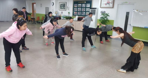 평생교육 신나는 레크댄스 최현정 뎃글수 0 조회수 2694 작성일 2018.03.27 2018. 03. 21. 수 레크댄스는 레크레이션과 댄스를 접목해 진행하는 수업으로 매주 수요일 오후에 진행되고 있습니다. 먼저 굳어 있던 몸을 스트레칭으로 풀어준 후 즐거운 레크댄스 수업이 시작 됩니다. 처음에는 빠른 노래에 춤을 추는 것을 어려워하기도 했지만 회기를 거듭하며 동작의 완성도가 높아지고 신나는 마음으로 수업을 즐기고 있습니다. 우리 주변의 전문적인 춤과 동작을 바탕으로 흥미롭게 적응할 수 있도록 심신건강에 도움을 주는 생활체육이며 다 같이 협동하거나 모르는 동작을 서로 알려주기도 하고 팀을 나누어 진행을 하기도 합니다. 여러 동작을 배우며 몸의 유연성과 기억력을 상승시키고 즐거움을 느낄 수 있는 레크댄스 프로그램에 앞으로 많은 관심바랍니다~^^