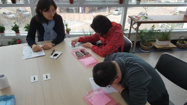 평생교육 기초학습교육 최현정 뎃글수 0 조회수 2629 작성일 2018.03.27 2018. 03. 27. 화 기초학습교육의 경우 6가지 프로그램으로 나누어져 있습니다. 그 중 오늘은 타자연습, 동영상보기와 색칠하기 프로그램이 진행되었습니다. 기초학습의 경우 이용자들의 인지능력을 고려하여 두 그룹으로 나누어 진행되며 색칠하기의 경우 이용자들이 선호하는 프로그램 중 하나이며 각자의 생각에 따라 자유롭게 색칠을 하고 어려운 부분은 선생님과 1:1로 손을 잡고 색을 칠해보며 기초적인 능력을 기를 수 있도록 하고 있습니다. 타자연습의 경우 자판에서 손의 위치와 타자의 정확도를 중심으로 이루어지고 있으며 타자연습을 마친 이용자분은 동영상보기를 통해 기본적인 인터넷 이용을 할 수 있도록 했습니다. 이용자 분들이 일상생활을 하는데 있어 기초적인 지식을 쌓고 연습을 할 수 있도록 많은 격려와 관심 부탁드립니다.^^