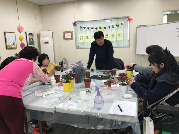 2강 원예치료 수업 서운지 뎃글수 0 조회수 2723 작성일 2018.03.28 천리향,(서향)아젤레야 봄초화 심기 - 막연하게 알고 있었던 화분 갈이를 강사님의 설명을 들으며 실습을 해보니 식물에 대한 이해가 높아지고 흙과 꽃향기에 마음까지 릭렉스한 시간이었다.