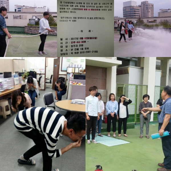 소방훈련실시 오정미 뎃글수 0 조회수 2901 작성일 2017.06.22 - 화재 발생시 대처능력을 강화하여 안전한 대피 및 사고발생을 예방하고자 2017년 6월 12일 소방훈련을 실시하였습니다.