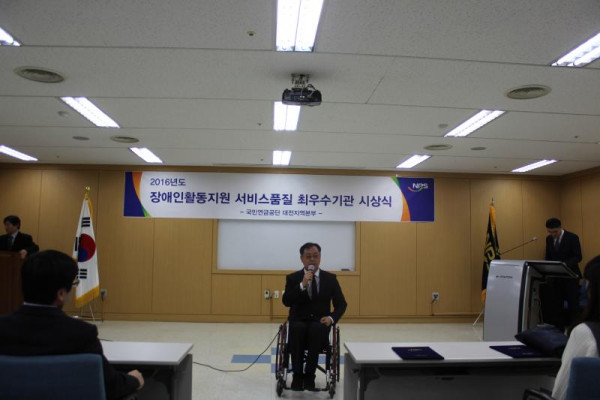 2016년 활동지원서비스 품질 최우수기관 선정 시상식 전현주 뎃글수 0 조회수 2958 작성일 2016.12.27 2016년 활동지원기관 평가에서 한밭장애인자립생활센터가 2016년 활동지원서비스 품질 최우수기관으로 선정되었습니다. 이용자, 활동보조인, 남인수 소장님 이하 모든 직원들 수고 많으셨고, 감사하고, 축하드립니다.