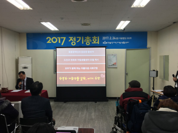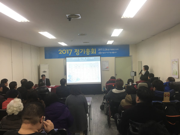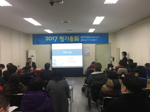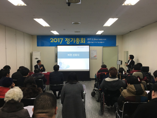 2017년 한밭센터 정기총회 오정미 뎃글수 0 조회수 3049 작성일 2017.03.21 한밭장애인자립생활센터는 2017.2.24(금)11시 정회원 72명이 모인가운데 정기총회를 개최하였습다. 심의. 의결안건인 - 2016년 사업결산, 2017년 사업계획 및 2017년 예산(안)과 - 임원선임인 남인수소장님 연임건, 감사연임건, 운영위원구성건 회원님들의 성원속에 만장일치로 의결되었음을 보고합니다. 늘 관심과 사랑으로 함께 해주시는 회원분들과 후원자분들께 감사드리며 2017년도 중증장애인의 자립을 위해 더 열심히 하겠습니다.