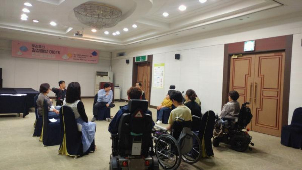 2017집단동료상담교육 사진~ 이은주 뎃글수 0 조회수 3080 작성일 2017.04.20 2017년 집단동료상담이 4월 17일부터 19일까지 유성 레전드호텔에서 고관철 성동느티나무자립생활센터 소장님을 모시고 진행되었습니다 총 11명의 교육생들과 함께한 시간 소중하고 모두 모두 수고하셨습니다.