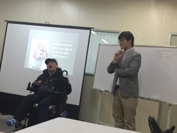 인권교육 8차 신현종 뎃글수 0 조회수 2941 작성일 2015.05.04 인권강사양성과정 8차 교육 "장애인당사자 강사와의 만남" 노들장애인야학의 허신행선생님과 그의 파트너 방상연 선생님.