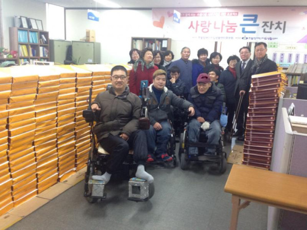 2015년 사랑나눔큰잔치 개최 최고관리자 뎃글수 0 조회수 2953 작성일 2015.03.03 2015년 2월 2일 사랑나눔 큰잔치를 개최하였습니다. 한밭IL센터의 월 정기 후원금과 후원회분들의 작은 정성이 모여 한밭IL센터의 회원 여러분들께 연말연시 따뜻한 정을 전달하는 시간이었습니다.
