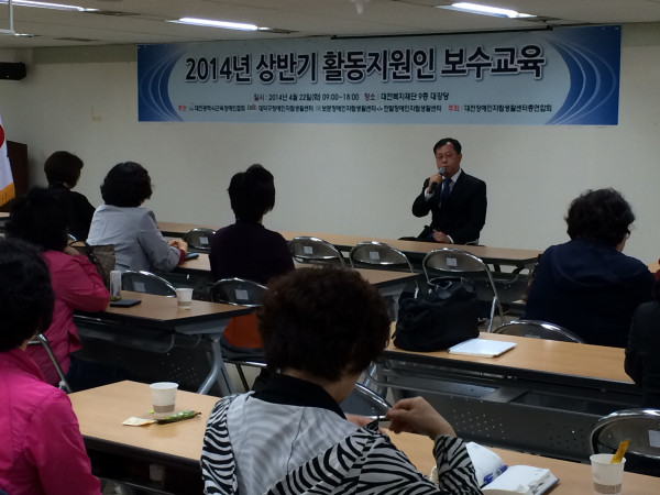 2014년 상반기 장애인 활동보조인 보수교육 최고관리자 뎃글수 0 조회수 3048 작성일 2014.05.20 2014년 상반기 장애인활동지원 보수교육 및 간담회2014년 4월 22일 상반기 장애인활동지원 보수교육이 대전복지재단 대강당에서 실시 되었습니다. 보수교육 내용에는 2014년 장애인화동지원 사업안내, 업무범위 및 부당한 요구 대처 요령, 응급상황시 대처요령, 질의응답 및 간담회가 진행되었습니다. 바쁘시고 힘드신 일을 잠시 미루어 두시고 많은 분들이 교육에 참여하여 진지하게 경청하시는 모습들에 감사드립니다.