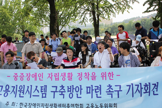 IL인턴제’ 도입 촉구(고용노동부앞-소장님참석) 최고관리자 뎃글수 0 조회수 2827 작성일 2013.09.02 한국장애인자립생활센터총연합회(이하 한자연)는 26일 오후 2시 과천정부종합청사 고용노동부 앞에서 기자회견을 갖고, 관계 부처에 ‘중증장애인 IL인턴제’ 도입을 촉구했다.IL인턴제는 전국의 IL센터에 중증장애인 3명을 단기인턴 방식으로 고용하고, 한국장애인고용공단이 자립생활고용지원금을 지급하는 방식이다. 요구서에는 ▲취업전 중중장애인의 훈련 및 보조기기 지원 ▲중증장애인 IL인턴제 실시 ▲고용안정시까지 추가급여 보장 ▲장애유형에 따른 개별지원 강화 및 소득보존 ▲취업 후 고용안정 유도▲자립생활센터 중심의 직종개발 ▲중증장애인 직접지원제도 신설 담겨있다.