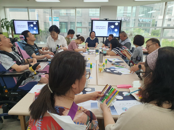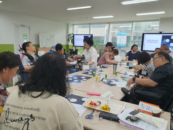 동료지원인 양성 특강 이은주 뎃글수 0 조회수 2830 작성일 2024.08.09 한밭장애인자립생활센터에서는 08월 08일 14:00 ~ 17:00 경계너머 조항주대표님과 함께 발달장애인동료지원인 양성 특강을 진행하였습니다 발달장애인 7명과 보조강사 4명이 함께 한 발달장애동료지원 상담용어 및 경계없는 동료상담. 나의 감정표현하기로 진행된 3시간이 짧게 느껴졌습니다 함께 해 주신 모든분들께 다시한번 감사 드립니다