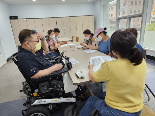 동료상담 자조모임 이은주 뎃글수 0 조회수 1919 작성일 2024.08.21 2024년 08월 20일 한밭장애인자립생활센터에서 동료상담스터디그룹 자조모임을 진행하였습니다. 매월 진행되는 동료상담스터디그룹자조모임은 매월 세쨋주 화요일에 진행되며 동료상담과 자립생활을 주제로 진행하고 있습니다. 이번에 자조모임 회원 다수가 3급과정에 도전하고 있어 자립생활과 동료상담 장애운동사에 대해 복숩하는 시간으로 진행하였습니다. 자격증 시험이라는 부담과 긴장김이 있었는데 함께 공부해 나간다고 생각하며 서로를 위로하는 시간도 함께 하였습니다. 한밭장애인자립생활센터는 동료상담사 3급 과정에 도전하는 상담가분들을 응원합니다. ^^