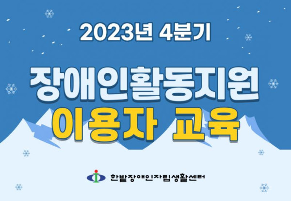 2023년 4분기 이용자 교육 활동지원 뎃글수 0 조회수 1779 작성일 2023.12.29 어느덧 2023년을 마무리하는 12월입니다. ❄️☃️ 본 센터에서는 장애인활동지원 서비스를 이용하는 이용자를 대상으로 교육을 실시하고 있습니다. 4분기에도 원활한 서비스를 이용할 수 있도록 담당 사회복지사가 방문하여 교육을 진행하였습니다. 앞으로도 질 높은 서비스를 제공하고자 다양한 방법으로 찾아 뵙겠습니다. 새해 복 많이 받으세요.
