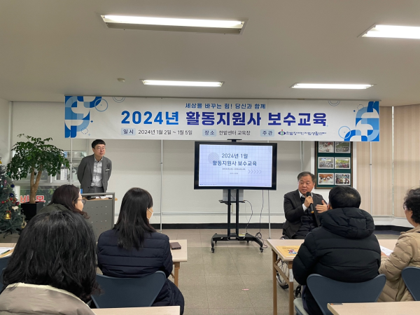 한밭사진 HOME 자료실 한밭사진 한밭사진 자료실 소식지 편의시설 한밭사진 2024년 1월 보수교육 진행사진 활동지원 뎃글수 0 조회수 1612 작성일 2024.01.11 2024년 새해가 밝았습니다. 새해 복 많이 받으세요~~ 활동지원팀은 2024년의 시작을 활동지원사 보수교육으로 시작했습니다. 1.2 ~ 1.5까지 4일간 총8회차를 진행하였고 380명의 활동지원사가 참석하셨습니다. 선생님들이 오시기 전 접수대와 교육장을 미리 준비합니다. 4일간 진행하는 교육일정으로 인사말은 센터장님과 국님께서 시간을 나누어 해주셨습니다. 이번엔 조한비, 권은영, 홍동일사회복지사가 교육을 진행하였습니다. 긴장되는 마음으로 열심히 준비를 하였답니다.^^ 교육도 좋지만 ㅎㅎ 집중도를 높이고 피곤한 눈을 번쩍 뜨게 하는 퀴즈있어야겠죠??^^ 교육을 마친 후에는 저희가 준비한 간식과 한밭후원회에서 후원해준 수건을 나눠 드렸습니다. 선생님들의 적극적인 참여와 협조로 1월 활동지원사 보수교육을 무사히 마칠 수 있었습니다. 다시한번 감사드리며, 올해에 진행되는 보수교육에 많은 관심과 참여부탁드립니다. 이전 다음 목록