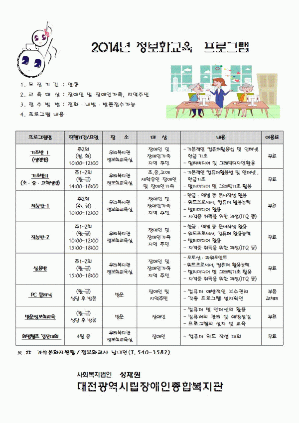 보도자료 HOME 커뮤니티 보도자료 공지사항 보도자료 한밭영상 캘린더 복지뉴스 백일장 전시회 보도자료 2014년 정보화 교육 프로그램 최고관리자 뎃글수 0 조회수 1502 작성일자 2014.03.26 많은 참여 바랍니다. 이전 다음 목록