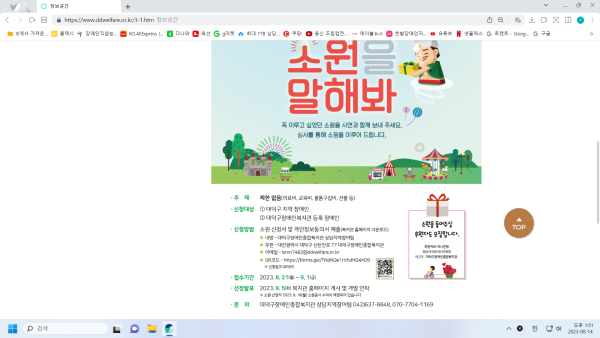복지뉴스 HOME 커뮤니티 복지뉴스 공지사항 보도자료 한밭영상 캘린더 복지뉴스 백일장 전시회 복지뉴스 소원을 말해 보세요..... 임성준 뎃글수 0 조회수 2606 작성일자 2023.08.14 이전 다음 목록